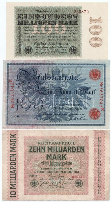 Német Birodalom / Weimari Köztársaság 1908-1923. 100M-10.000.000.000M (6xklf) T:I--III közte szép papír, kis szakadás