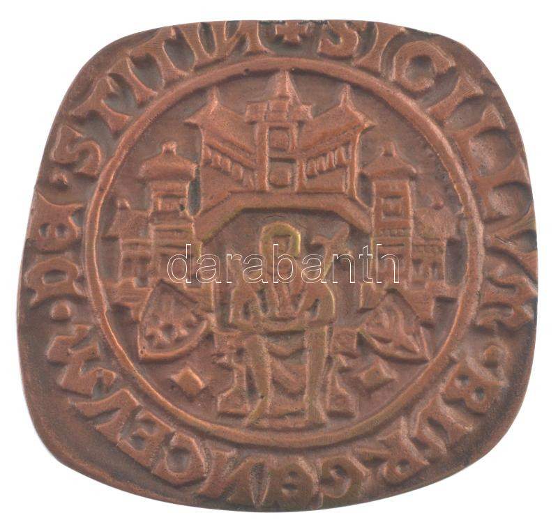 Lengyelország / Szczecin 1975. "Szczecin város első bélyegzője" kétoldalas öntött bronz emlékérem nem eredeti tokban (65x70mm) T:1