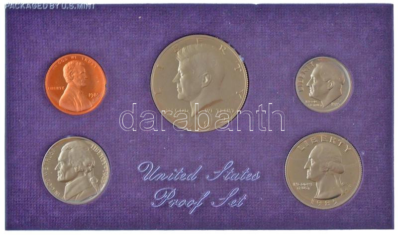 Amerikai Egyesült Államok 1985S 1c - 1/2$ (5xklf) proof szett eredeti műanyag dísztokban T:PP patina USA 1985S. 1 Cent -1/2 Dollar (5xdiff) "United States Proof Set" in original plastic hardcase C:PP patina