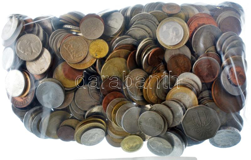 Vegyes, főleg külföldi érmetétel mintegy ~2kg súlyban, közte egzotikus országok T:vegyes Mixed, mostly foreign coin lot, within egzotic countries (~2kg) C:mixed