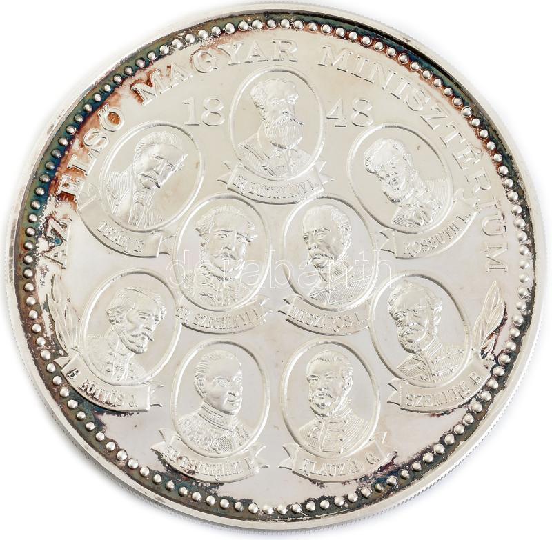 Bognár György (1944-) ~1998. "A forradalom és szabadságharc 150. évfordulójára" Ag emlékérem sérült tokban (505g/0.999/100mm) T:1- (PP) patina, felületi karc