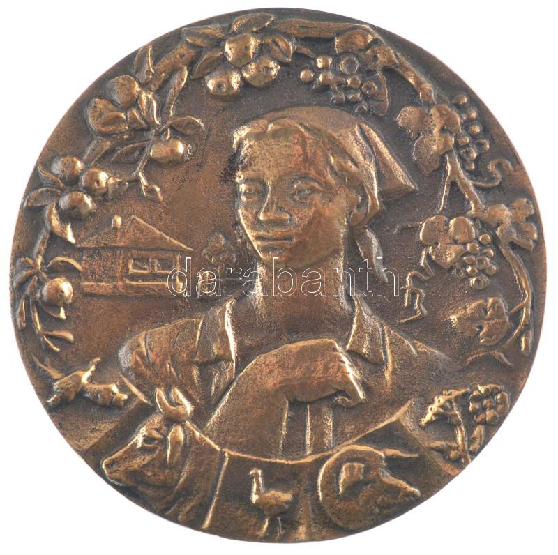 Leírás: DN "Falusi élet" egyoldalas bronz emlékérem feloldatlan F.B.(?) szignóval (95mm) T:2