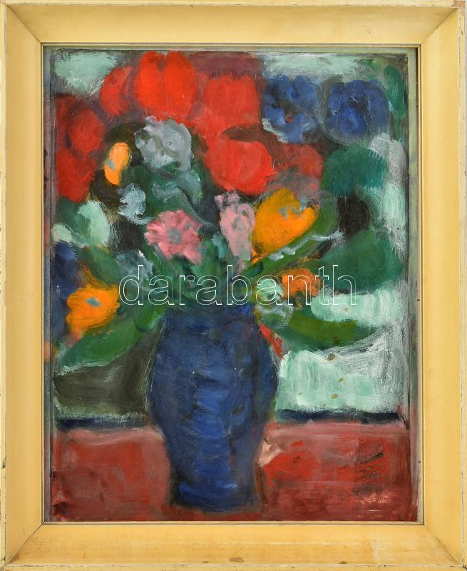 Leírás: Jelzés nélkül: Csendélet. Olaj, farost. Fakeretben. 45×35 cm
