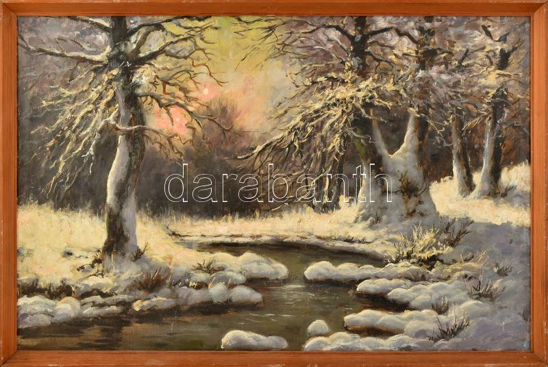 Leírás: Jelzés nélkül: Havas táj. Olaj, vászon. fakeretben. 39x59 cm