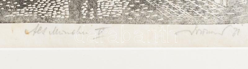 Leírás: Olvashatatlan jelzéssel: Alt München V. Fametszet, kézi levonat, papír, paszpartuban, 29,5×23 cm