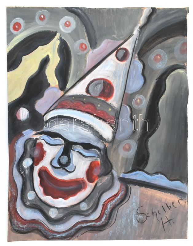Scheiber H jelzéssel: Bohóc. Vegyes technika, karton. 49,5x30 cm https://www.darabanth.com/hu/435-Gyorsarveres/435.0/Festmenyek-es-grafikak/Festmenyek-es-grafikak-jelzessel-jelzes-nelkul~500002/Scheiber-H-jelzessel-Bohoc-Vegyes-technika-karton-49-5x30-cm~II2738969