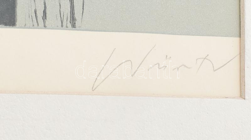 Leírás: Würtz Ádám (1927-1994): Űrhajósok. Színes linómetszet, papír, jelzett, próbanyomat, paszpartuban, 39,5×33 cm