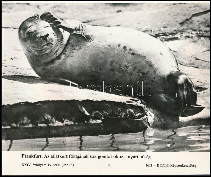 Frankfurt. Az állatkert fókájának sok gondot okoz a nyári hőség. XXIV. évfolyam 19. szám (25578) MTI Külföldi Képszerkesztőség. Jó állapotban. 20,5x24 cm / Frankfurt. The zoo seal has a lot of problems in the summer heat.