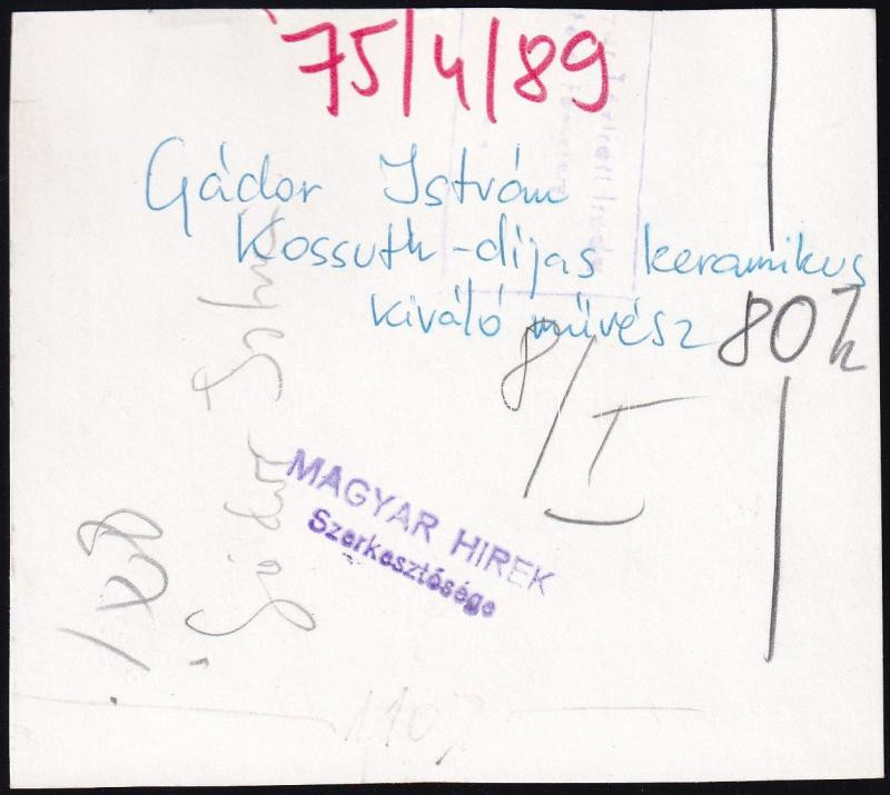 Leírás: Gádor István keramikus, kiváló művész sajtófotó 1975 10x9 cm