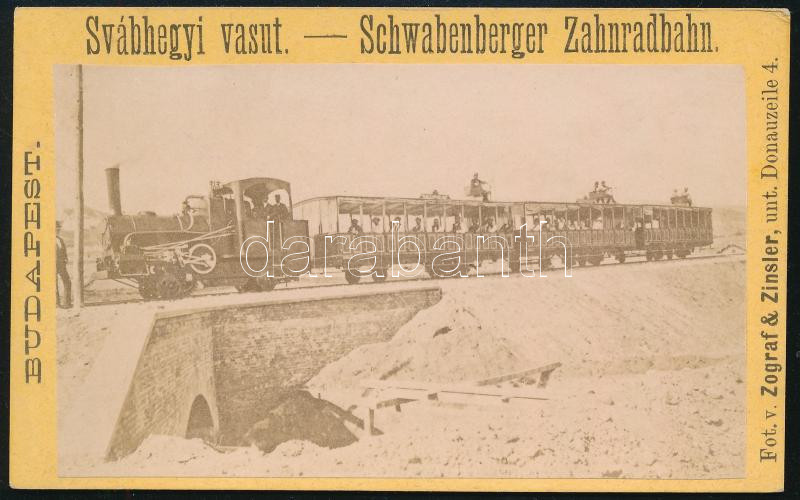 Leírás: cca 1875 Budapest, svábhegyi vasút, keményhátú fotó Zograf & Zinsler műterméből, 6,5×10,5 cm