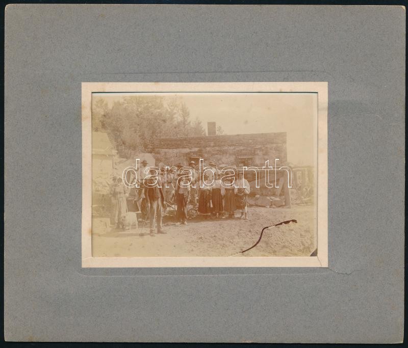 Leírás: cca 1900 Fogaras-Brassó HÉV építésénél dolgozó munkások, Baráber tanfolyam, fotó paszpartuban, 8×11 cm