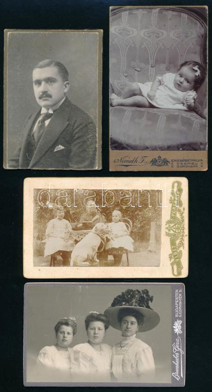 cca 1910 4 db keményhátú fotó, budapesti műtermekből, egyik vágott, 10... https://www.darabanth.com/hu/435-Gyorsarveres/435.0/Fotomuveszet/Foto~500022/cca-1910-4-db-kemenyhatu-foto-budapesti-mutermekbol-egyik-vagott-10-5C3976-5-cm~II2814939