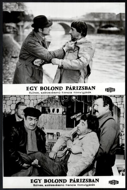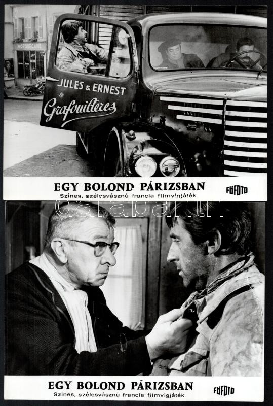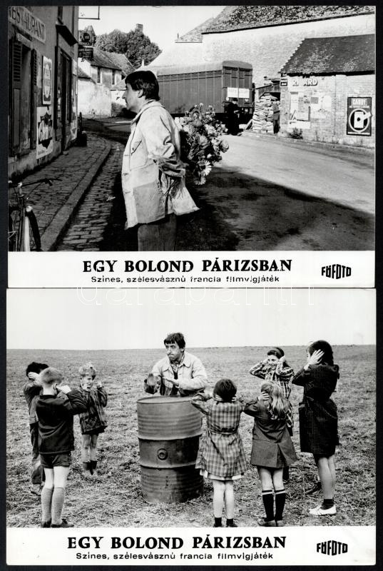 cca 1967 ,,Egy bolond Párizsban" című francia filmvígjáték jelenetei és szereplői, 13 db vintage produkciós filmfotó, ezüst zselatinos fotópapíron, a használatból eredő (esetleges) kisebb hibákkal, 18x24 cm
