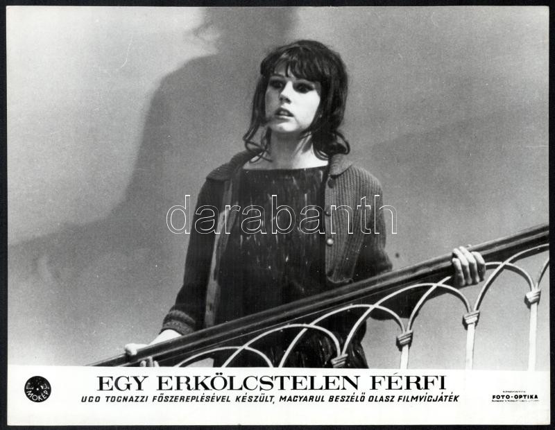 cca 1967 ,,Egy erkölcstelen férfi" című olasz filmvígjáték jelenetei és szereplői, 9 db vintage produkciós filmfotó, ezüst zselatinos fotópapíron, a használatból eredő (esetleges) kisebb hibákkal, 18x24 cm
