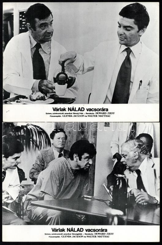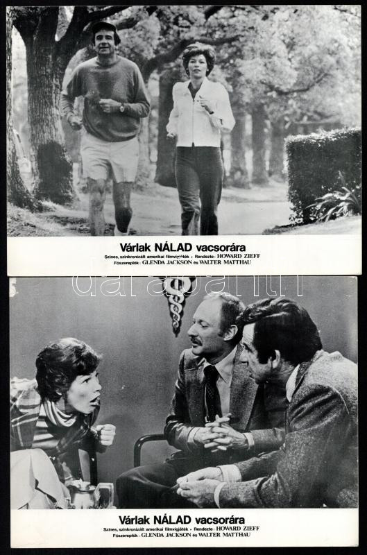 cca 1978 ,,Várlak nálad vacsorára" című amerikai filmvígjáték jelenetei és szereplői (Walter Matthau és Glenda Jackson főszereplésével), 11 db produkciós filmfotó nyomdatechnikával sokszorosítva, karton lapra, egyoldalas nyomtatással, 18x24 cm