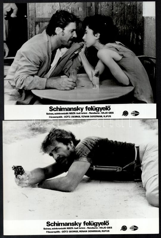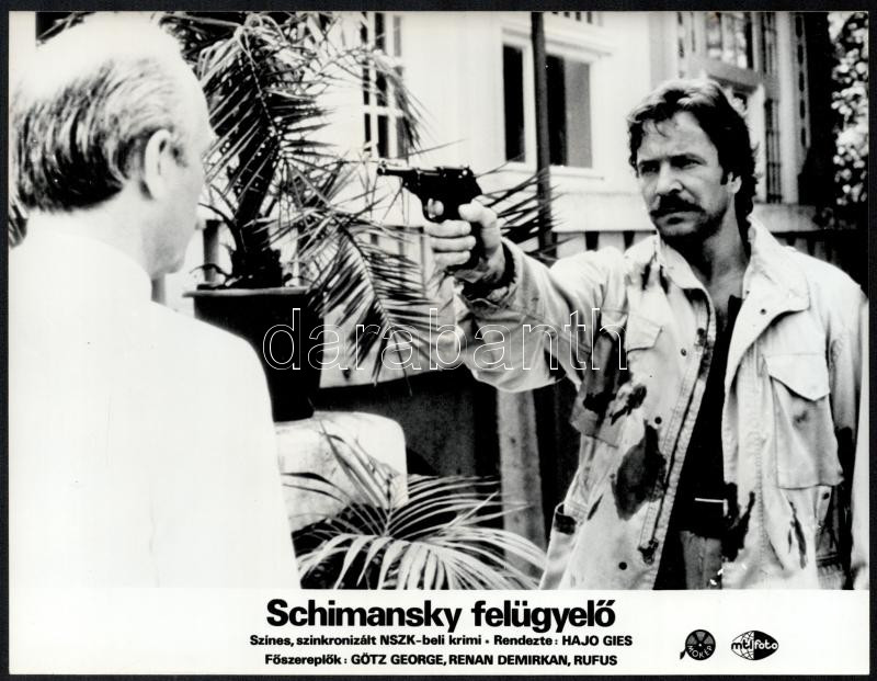 cca 1988 ,,Schimansky felügyelő" című NSZK bűnügyi film jelenetei és szereplői, 5 db vintage produkciós filmfotó, ezüst zselatinos fotópapíron, a használatból eredő (esetleges) kisebb hibákkal, 18x24 cm