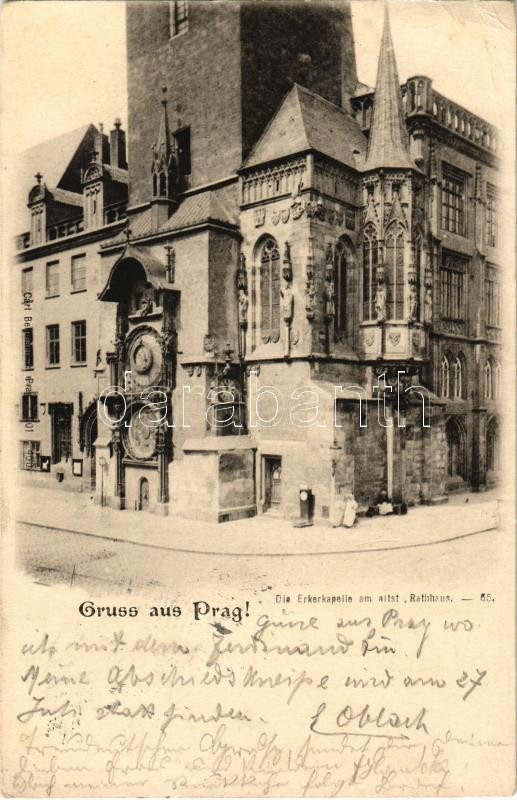 1901 Praha, Prag; Die Erkerkapelle am altst. Rathhaus / chapel at the ... https://www.darabanth.com/hu/435-Gyorsarveres/435.0/Kepeslapok/Cseh-Koztarsasag~2500031/1901-Praha-Prag-Die-Erkerkapelle-am-altst-Rathhaus-chapel-at-the-town-hall-EK~II2819686