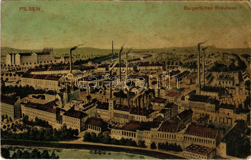 Leírás: 1913 Plzen, Pilsen; Bürgerliches Bräuhaus / brewery (Rb)