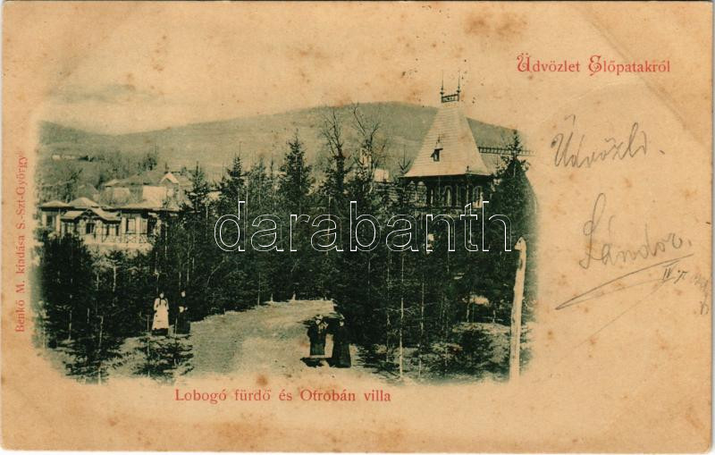 1899 (Vorläufer) Előpatak, Valcele; Lobogó fürdő és Otrobán villa. Ben... https://www.darabanth.com/hu/435-Gyorsarveres/435.0/Kepeslapok/Erdely~2500008/1899-Vorlaufer-Elopatak-Valcele-Lobogo-furdo-es-Otroban-villa-Benko-M-kiadasa-spa-~II2793988