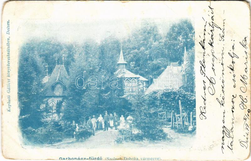 Leírás: 1899 (Vorläufer) Kővárfüred, Carbunari (Máramaros); Garbonáci gyógyfürdő / spa villa (kopott sarkak / worn corners)