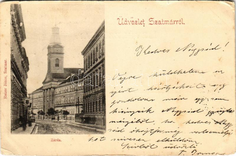 1900 Szatmárnémeti, Szatmár, Satu Mare; Zárda. Reizer János kiadása / ... https://www.darabanth.com/hu/435-Gyorsarveres/435.0/Kepeslapok/Erdely~2500008/1900-Szatmarnemeti-Szatmar-Satu-Mare-Zarda-Reizer-Janos-kiadasa-nunnery-Rb~II2818043