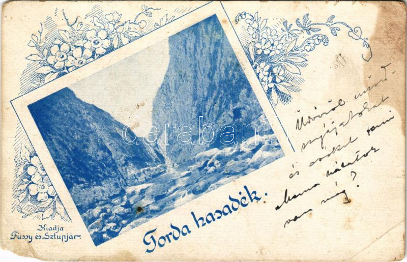 Leírás: 1900 Tordai-hasadék, Cheile Turzii, Torda, Turda; Torda hasadék. Füssy és Sztupjár kiadása / mountain pass, gorge. Art Nouveau, floral (b)