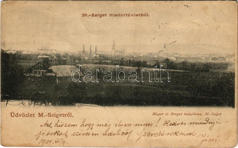 Leírás: 1901 Máramarossziget, Sighetu Marmatiei; madártávlatból. Mayer és Berger kiadása / general view (EK)