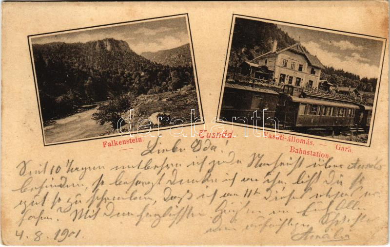 1901 Tusnádfürdő, Baile Tusnad; Sólyom-kő, vasútállomás, vonat / Falke... https://www.darabanth.com/hu/435-Gyorsarveres/435.0/Kepeslapok/Erdely~2500008/1901-Tusnadfurdo-Baile-Tusnad-Solyom-ko-vasutallomas-vonat-Falkenstein-Bahnstation-~II2818311