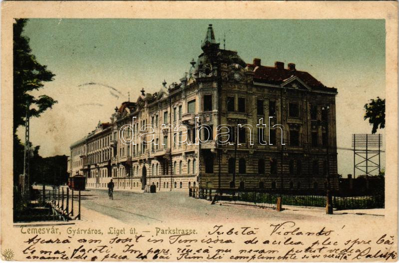 1903 Temesvár, Timisoara; Gyárváros, Liget út, villamos / Fabric, stre... https://www.darabanth.com/hu/435-Gyorsarveres/435.0/Kepeslapok/Erdely~2500008/1903-Temesvar-Timisoara-Gyarvaros-Liget-ut-villamos-Fabric-street-tram-r~II2817967