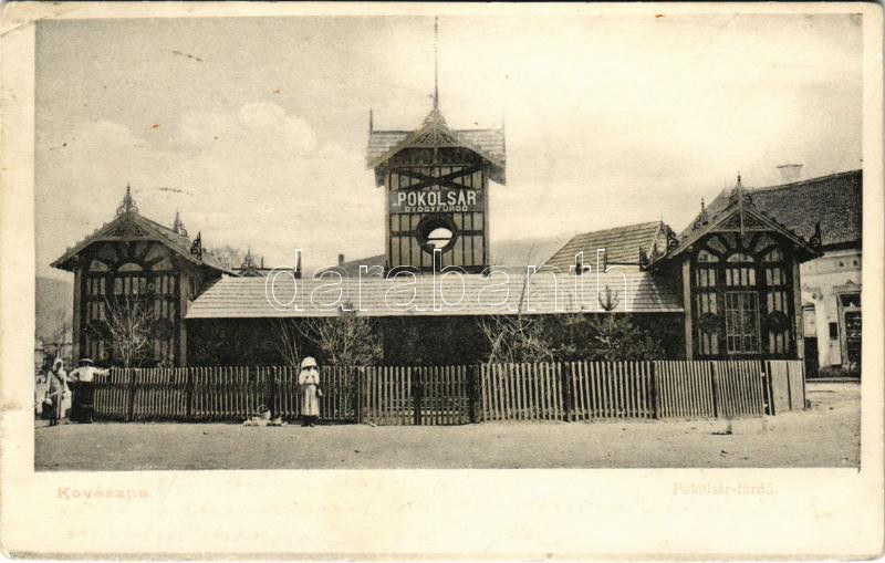 1906 Kovászna, Covasna; Pokolsár gyógyfürdő / spa, bath (lyuk / pinhol... https://www.darabanth.com/hu/435-Gyorsarveres/435.0/Kepeslapok/Erdely~2500008/1906-Kovaszna-Covasna-Pokolsar-gyogyfurdo-spa-bath-lyuk-pinhole~II2814041