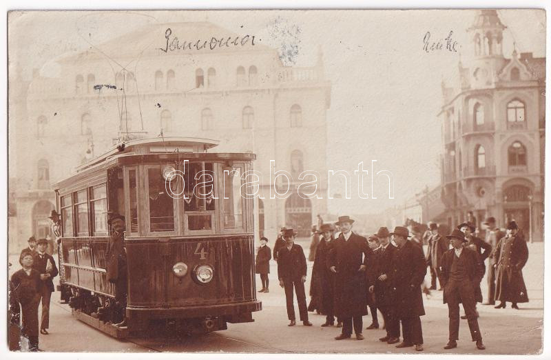 Leírás: 1906 Nagyvárad, Oradea; Pannonia szálloda és Emke kávéház, N.V.V. villamos / hotel and cafe, tram. photo (EK)