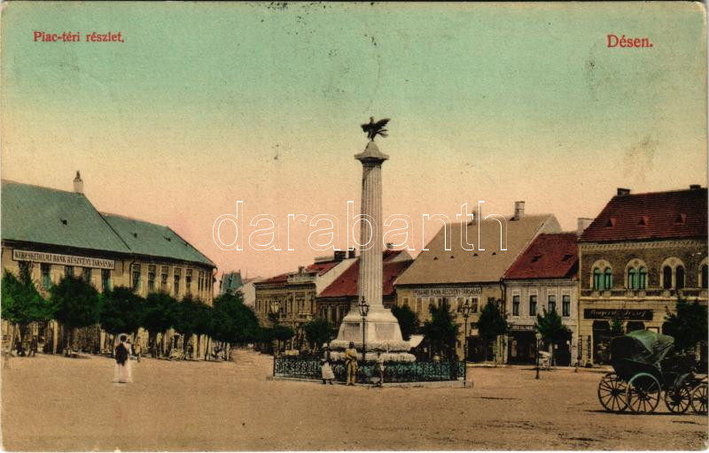 1907 Dés, Dej; Piac tér, emlékmű, Kereskedelmi bank részvénytársaság, ... https://www.darabanth.com/hu/435-Gyorsarveres/435.0/Kepeslapok/Erdely~2500008/1907-Des-Dej-Piac-ter-emlekmu-Kereskedelmi-bank-reszvenytarsasag-Polgari-Bank-uzlete~II2817076