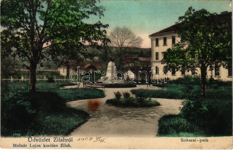 1907 Zilah, Zalau; Szikszai park. Molnár Lajos kiadása / spa park https://www.darabanth.com/hu/435-Gyorsarveres/435.0/Kepeslapok/Erdely~2500008/1907-Zilah-Zalau-Szikszai-park-Molnar-Lajos-kiadasa-spa-park~II2184093