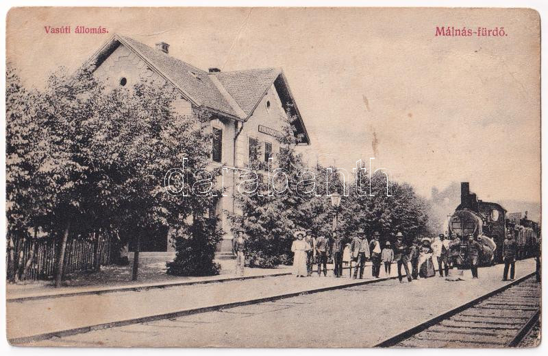 1908 Málnásfürdő, Malnas Bai; vasútállomás, gőzmozdony, vonat, vasutas... https://www.darabanth.com/hu/435-Gyorsarveres/435.0/Kepeslapok/Erdely~2500008/1908-Malnasfurdo-Malnas-Bai-vasutallomas-gozmozdony-vonat-vasutasok-Gere-Istvan-kiadC3~II2822002