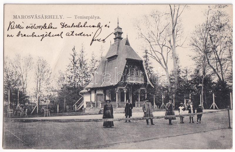 1909 Marosvásárhely, Targu Mures; Tenisz pálya. Porjes S. Sándor kiadá... https://www.darabanth.com/hu/435-Gyorsarveres/435.0/Kepeslapok/Erdely~2500008/1909-Marosvasarhely-Targu-Mures-Tenisz-palya-Porjes-S-Sandor-kiadasa-tennis-court-sport~II2822534