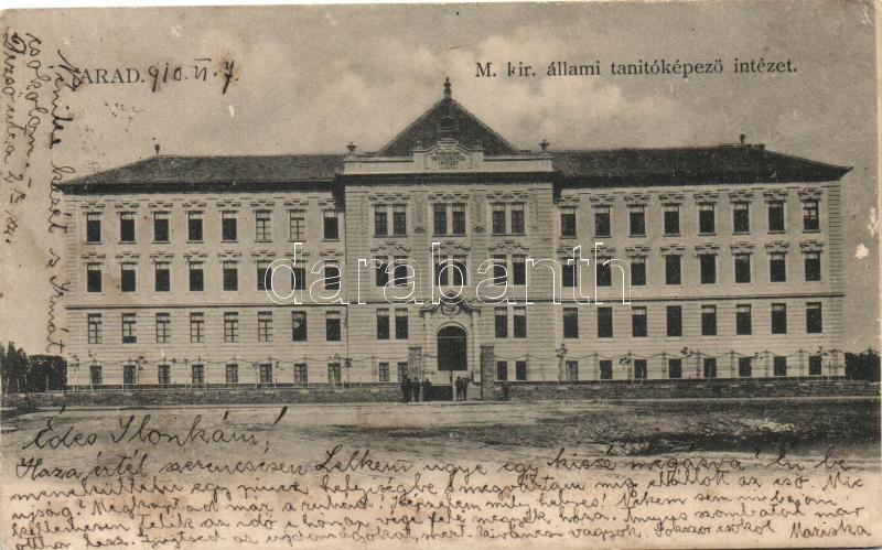 1910 Arad, Állami Tanítóképező Intézet / Teacher Training Institute https://www.darabanth.com/hu/435-Gyorsarveres/435.0/Kepeslapok/Erdely~2500008/1910-Arad-Allami-Tanitokepezo-Intezet-Teacher-Training-Institute~II871388