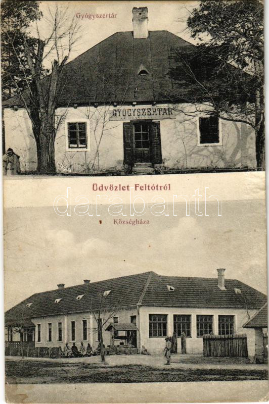 Leírás: 1912 Feltót, Tauc, Tautz, Tauti, Taut; Gyógyszertár az Őrangyalhoz, Községháza / pharmacy, town hall (r)
