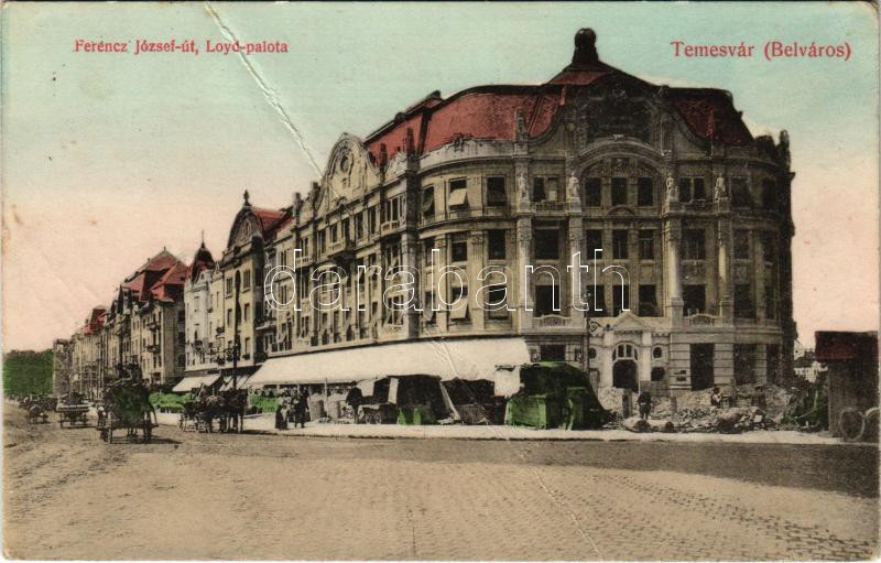 1913 Temesvár, Timisoara; Ferenc József út, Lloyd palota, piac. Grün K... https://www.darabanth.com/hu/435-Gyorsarveres/435.0/Kepeslapok/Erdely~2500008/1913-Temesvar-Timisoara-Ferenc-Jozsef-ut-Lloyd-palota-piac-Grun-Karoly-kiadasa-street-v~II2818722