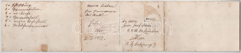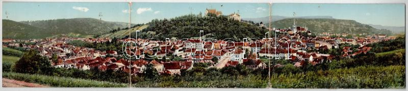 Leírás: 1917 Segesvár, Schässburg, Sighisoara; 3-részes kihajtható panorámalap / 3-tiled folding panoramacard (hajtásnál szakadt / torn at fold)