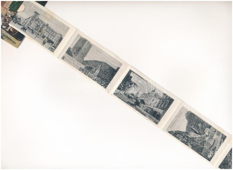 Leírás: 1918 Brassó, Kronstadt, Brasov; Látkép a fehér bástyával. Leporellolap 10 mini képpel / bastion tower and church. Leporellocard with 10 mini pictures