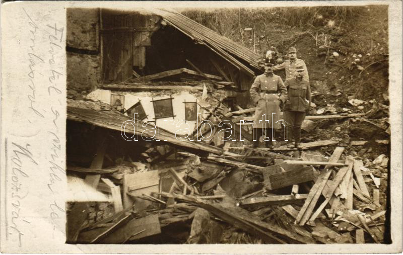 1918 Kolozsvár, Cluj; Katasztrofális sziklaomlás Fellegvár alján, a képen látható katona a házban lakott, de pont az omlás előtt elment otthonról / Cetatuie / catastrophic rock fall, destruction, the soldiers on the photo lived in the house but left just before the fall. photo (EB)