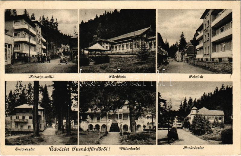 1941 Tusnádfürdő, Baile Tusnad; Astoria szálloda, autó, fürdőház, Felső út, park, villa, erdő / hotel, automobile, spa, street, villa, park, forest (EK)