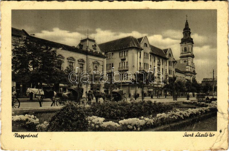 1943 Nagyvárad, Oradea; Szent László tér, üzletek / square, shops (EB) https://www.darabanth.com/hu/435-Gyorsarveres/435.0/Kepeslapok/Erdely~2500008/1943-Nagyvarad-Oradea-Szent-Laszlo-ter-uzletek-square-shops-EB~II2817501