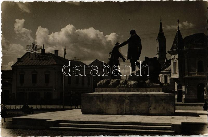 1943 Zilah, Zalau; Fő tér, Wesselényi szobor, gyógyszertár, Éder Géza vas és festék kereskedése / main square, statue, pharmacy, shop. Foto Elite "Peter" photo