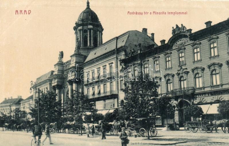 Arad, Andrássy tér, Minorita templom, Geller I., Hoffmann üzlete, keré... https://www.darabanth.com/hu/435-Gyorsarveres/435.0/Kepeslapok/Erdely~2500008/Arad-Andrassy-ter-Minorita-templom-Geller-I-Hoffmann-uzlete-kerekpar-W-L-910-square~II1745281