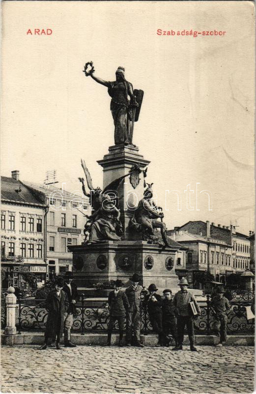 Arad, Szabadság szobor, Hammer Vilmos, Ries J. Társa üzlete, Aradi Ker... https://www.darabanth.com/hu/435-Gyorsarveres/435.0/Kepeslapok/Erdely~2500008/Arad-Szabadsag-szobor-Hammer-Vilmos-Ries-J-Tarsa-uzlete-Aradi-Kereskedok-Kore-statue-mo~II2823274