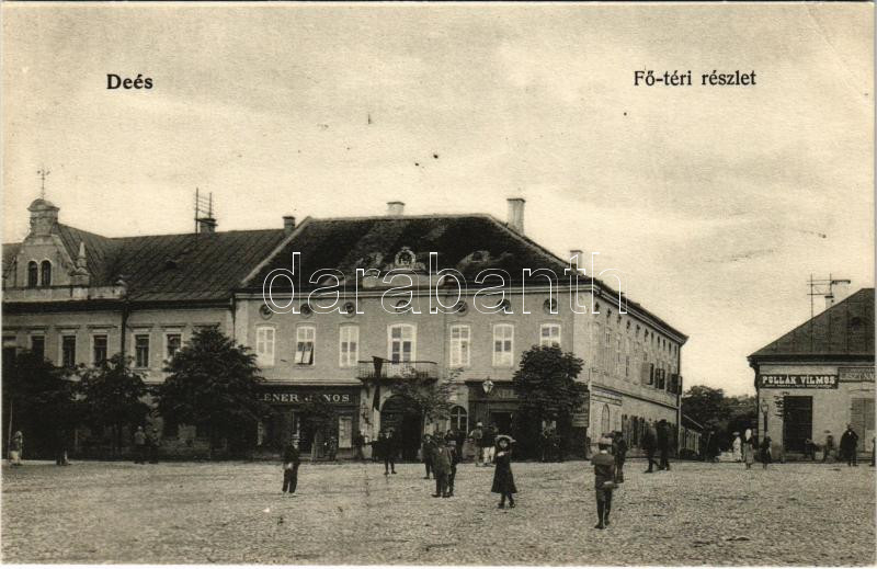 Leírás: Dés, Dej; Fő tér, Pollák Vilmos, Hoffmann üzlete / main square, shops (EK)