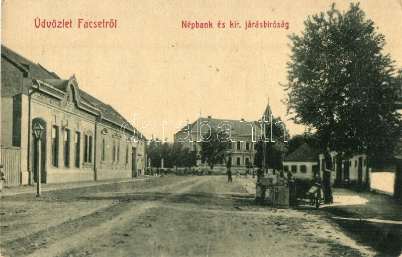 Leírás: Facset, Facsád, Faget; Népbank és kir. járásbíróság. W. L. Bp. 2071. Klein Dávid kiadása / bank, court (EK)