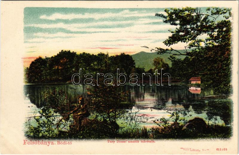 Leírás: Felsőbánya, Baia Sprie; Bódi tó. Túry József amatőr felvétele. Szabó Károly kiadása / Lacul Pinthea / lake