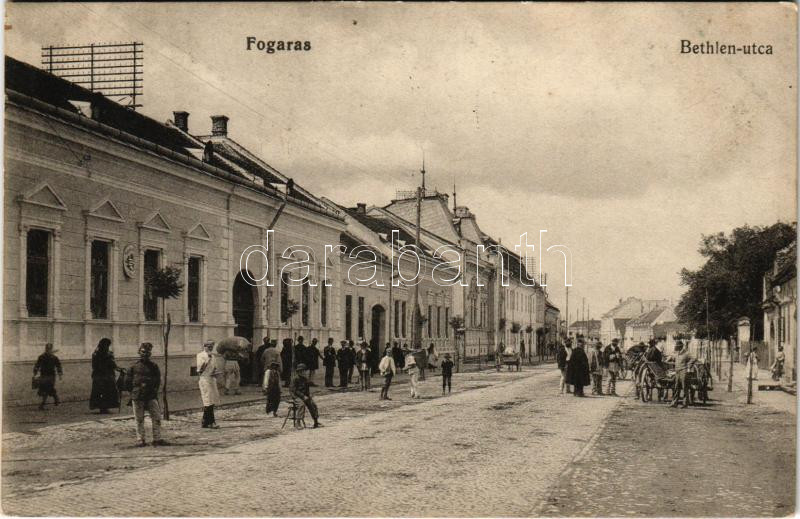 Fogaras, Fagaras; Bethlen utca. Fleissig Jakab és fia kiadása / street... https://www.darabanth.com/hu/435-Gyorsarveres/435.0/Kepeslapok/Erdely~2500008/Fogaras-Fagaras-Bethlen-utca-Fleissig-Jakab-es-fia-kiadasa-street-EK~II2823082